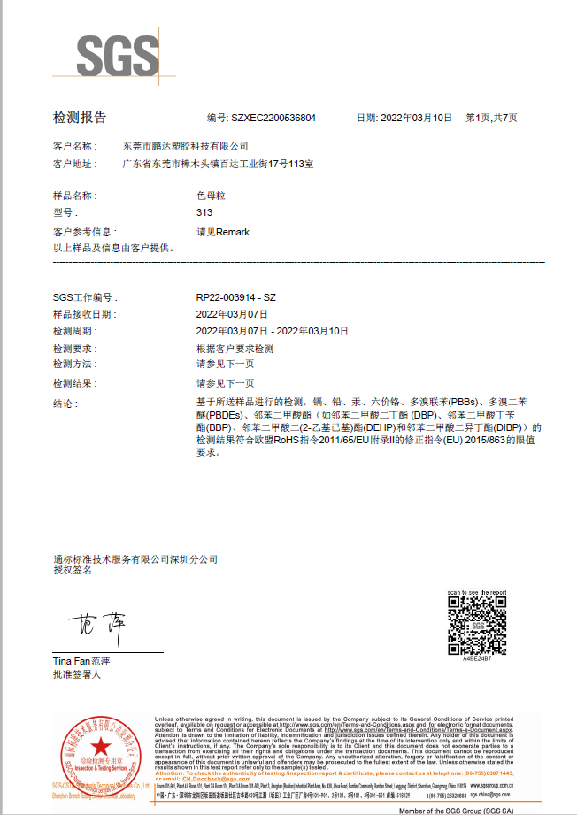 東莞市鵬達塑膠科技有限公司是一家集色母、色粉、功能母粒、染色抽粒、改性工程塑料的研發(fā)、生產、銷售于一體的生產企業(yè),座落于中國塑膠商貿重鎮-廣東省東莞市樟木頭鎮,公司建立了一套完善的研發(fā)生產、品質管理、銷售服務體系,依托自身強大的研發(fā)能力及嚴謹高效的管理,生產高品質、高技術含量的健康環(huán)保色母粒和多功能母粒,年生產能力達萬噸,給廣大客戶提供了可靠的交貨保障。